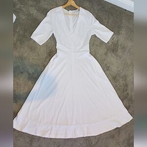 This elegant white midi dress is perfect for any occasion. Its classic design offers a timeless look that is both stylish and versatile.