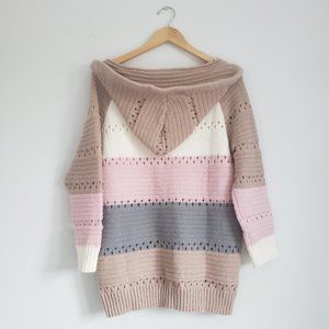 Misslook Hooded Vneck Knitted Wool Eyelet Colourblock Sweater