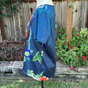 Misslook Horned Owl Graphic Zip Blue Blouse Women's Size Small