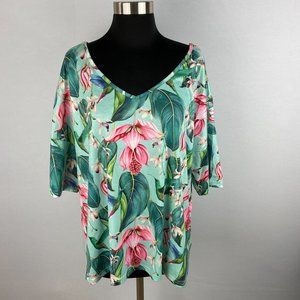 Misslook Lush Looking Colorful Hummingbird Floral Women's XL Top Blouse