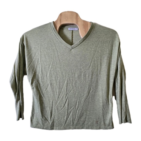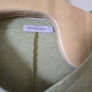 Misslook Olive Green Top V Neck Long Sleeve Casual Blouse Size Large