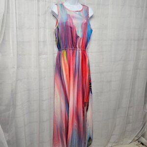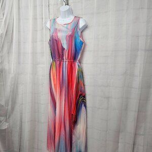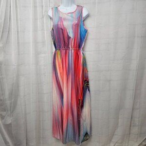 Misslook Pink Rainbow Striped Sleeveless Maxi Dress Colorful S