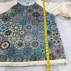 Misslook Plus Size Short Sleeve Geometric Fringe Flowy High Neck Blouse 3XL