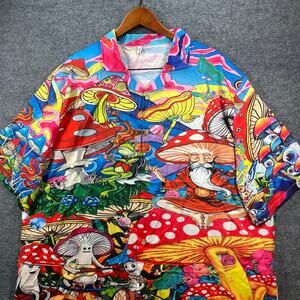 Misslook Psychedelic Button Up Mushroom Shirt Men's 3XL Colorful Party Shrooms