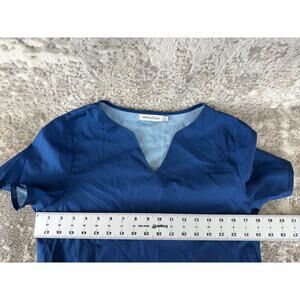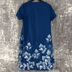 Misslook Size M Floral Print V Neck Midi Shirt Dress Blue Short Sleeve Pullover