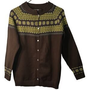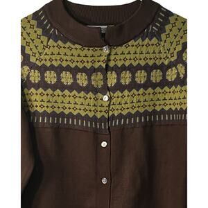 Misslook Sweater Womens Size M Brown Fair Isle Button Up Long Sleeve Cardigan