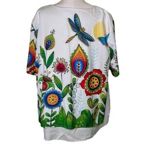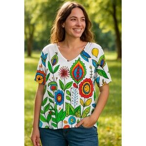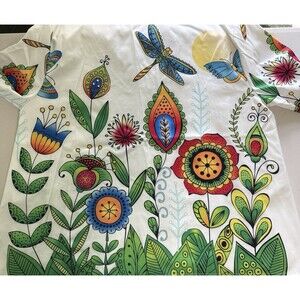 Misslook Women's Boho Artsy Colorful Floral Print Oversized Hippie Shirt Sz XL