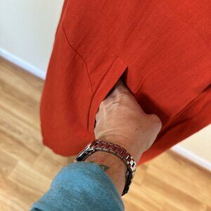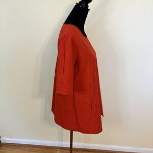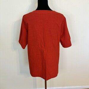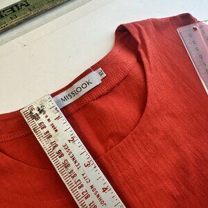 Misslook Womens Red Tunic Top Shirt Asymmetrical Hem Pockets Cotton 3/4 Sleeve