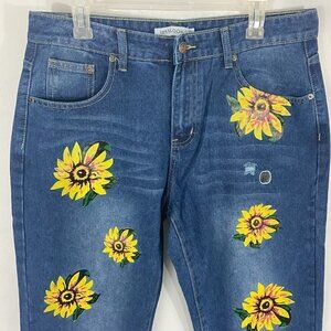 Misslook Women's Sunflower Floral Jeans Straight Leg Size L (31 x 30) NWT