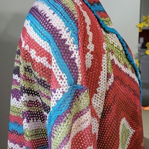 Great cover up, very light weight. So fun.. Size XL, pit to pit flat measurement is 24". Sleeves are 24". Top to bottom length is 32". Great used condition. Consider making a bundle and get an even better offer.