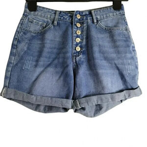 Misslook size M Jeans Shorts High-rise Button Fly Cuffed Blue Women's . Condition is Pre-owned.