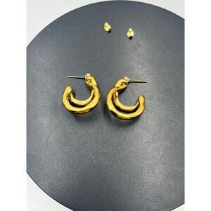18K Recycled gold plated on brass earrings. Hoops. Post backs for pierced ears. 32mm x 14.7mm. Imported.