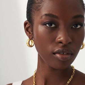 A standout addition to your ear stack. These chunky hoops are a Lucy Williams x Missoma favorite, featuring a vintage-inspired plaited texture that creates a distinctive finish. Wear solo or pair with Pavé huggies for an impactful look.