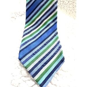 Missoni 100% Silk Neck Tie Blue Green Stripe Italy