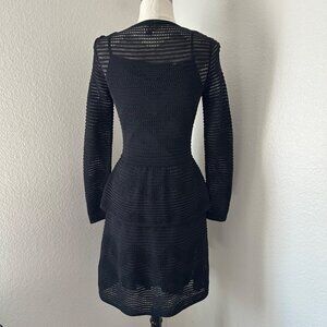 Missoni A Line Peplum Knit Short Dress Pullover Long Sleeve Minimalist Black 38