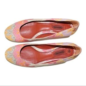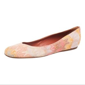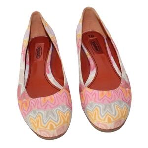 The Missoni fashion house has revolutionized the art of knitting to include clothing and even shoes. These refreshing Missoni ballet flats are made from multicolored knit fabric. They come with almond shaped toes and leather lined insoles.
