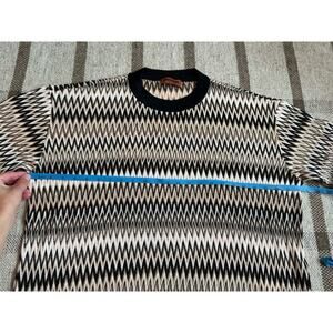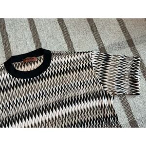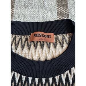 Missoni Black Beige Cotton Blend Sweater Short Sleeve Women 46 US 10 Ribbed Crew