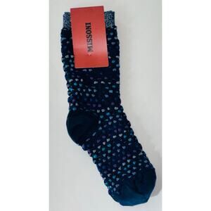 Known for its mastery of knitwear, these Missoni socks are sure to take your sometimes forgot about accessory wardrobe to the next level. Knitted with a cotton blend, these knee length socks will keep you warm, while adding to your everyday style. Pair with your favorite boots for an ultra chic, yet cozy look.