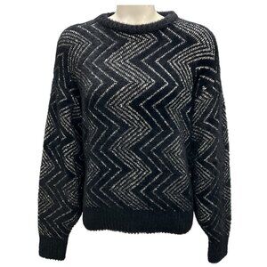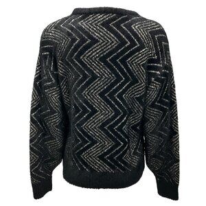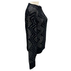 Missoni Black / Silver 2024 Sequined Zig Zag Knit Crewneck Sweater