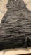 This elegant black sheath dress showcases a deep V-neckline and a sleeveless design, perfect for a night out. The form-fitting silhouette is crafted from a stretchy fabric that hugs the body's contours, featuring a subtle textured appearance with lighter gray horizontal streaks. Its versatile style allows for various accessorizing options, making it a chic choice for any cocktail occasion.