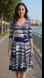 Chic Missoni midi dress with bold blue and white patterns. Features a flattering V-neck and three-quarter sleeves. Perfect for stylish outings.