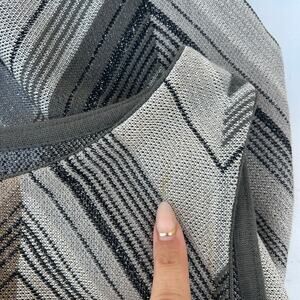 Chic Italian craftsmanship defines this Missoni sleeveless knit dress, featuring the brand’s signature chevron pattern in warm metallic neutrals. Effortlessly elegant, this piece transitions from day to night with its refined shimmer and timeless silhouette. A perfect example of quiet luxury and sophisticated knitwear style — ideal for resort wear, evening events, or designer capsule collections.