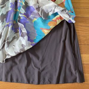 In fair pre-owned condition- only worn 2x but the fabric is delicate and has two small holes, along with faint discoloration and wear along the neckline.