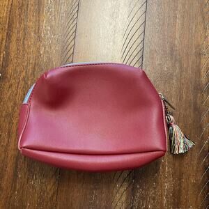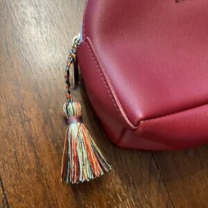 Missoni Cosmetic Bag Red Faux Leather Multicolor Tassel Zig Zag Lining Makeup Case