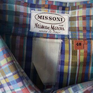 Missoni For Neiman Marcus Vintage Plaid Cotton Button Up Shirt Size IT 48 US M.