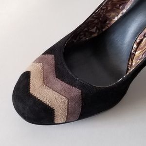 Missoni For Target 9.5M Black Suede Chevron Block Heel Pumps