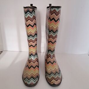 Missoni For Target Rubber Rain Boots Women's 8 Colorful Zig Zag Tall Collab