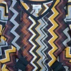 Missoni For Target Women XS Long Sleeve Abstract Chevron V-Neck Pullover Blouse