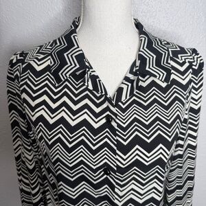 Missoni For Target Women's Black & White Chevron Long Sleeve Blouse -cp
