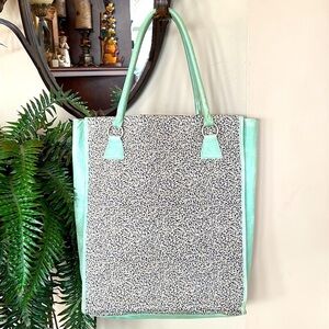 Missoni Genuine Leather Mint Green and Black Multi Patterned Fabric Tote Bag