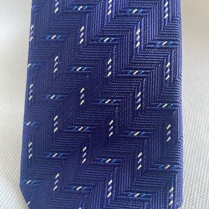 Missoni Herringbone/ modern geometric neck tie. Navy blue with white/lavender/blue threads. Silk 2.5”