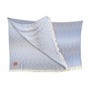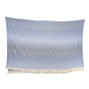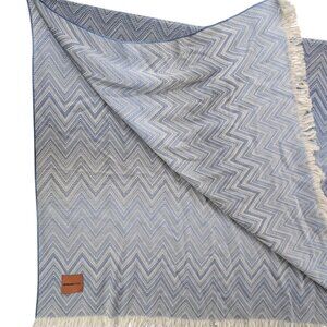 Missoni Home Timmy Throw Blanket Blue White Chevron Fringe Trim 56"x72"