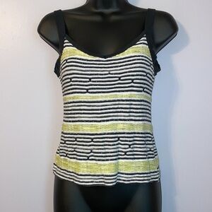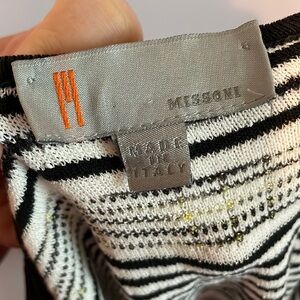 Missoni Knit Different Striped Yellow Black White Tank Top size 4. Stripes have different texture to them as well. See pictures. Very good preowned condition. Soft. Has stretch. 95% viscose. Great alone or under a jacket/blazer. Y2K label looks to be from early 2000’s.