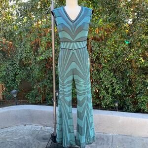 Missoni Knit Jumper Turquoise Black One Piece Italy Formal Tank Wide Leg