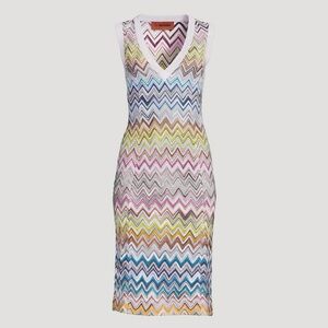 Knit from a luxurious cotton blend, this midi is stitched with MISSONI's iconic zig-zag stripe motif embellished with metallic threads woven throughout. It has a curve-hugging silhouette with a V-neckline and solid rib-knit trim.