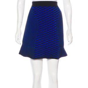 NWT. Missoni knit mini skirt with knit pattern throughout and flounced hem. Black and blue, US10. Tags attached.