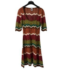 Missoni M Multicolor Chevron Patterned Knit Flared Cotton Blend Dress Size S US