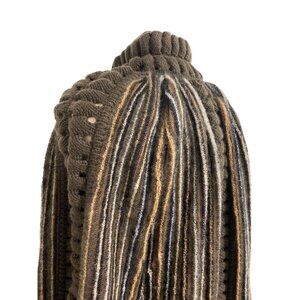 This Missoni cardigan coat, crafted in Italy, showcases a timeless striped pattern in shades of brown and beige. Its wool construction ensures warmth and durability, perfect for the colder months. The design features a distinctive ribbed texture and elegant button closures, offering both style and functionality. A quintessential piece for any wardrobe.