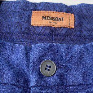 Missoni Men’s Textured Zig Zag Trousers – Navy Blue (Size 32)