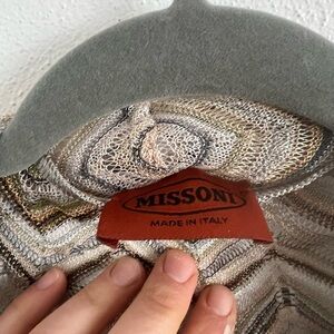 Missoni Metallic Silver Gold Cardigan, size 44, good condition, light wear, a few pulls in the fabric which have been pulled through to inside, not noticeable when on