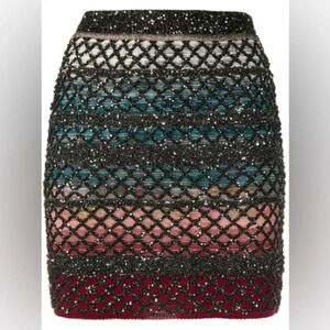 Missoni Mini Skirt Wool Metallic Lattice Knit Rare Fall Stretchy Small 40