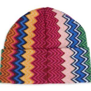 The chevron beanie from Missoni is crafted of a wool blend, showcasing a vibrant multicolor pattern for a signature touch.