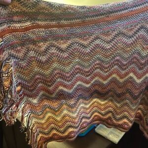 One Size Length: 23" at shortest point in front 100% acrylic Made in Italy In great condition with no flaws Casual colorful multicolor designer luxury layering