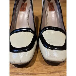 Missoni Patent Leather Trim bone black Chunky Square Toe Heels 38 Italy