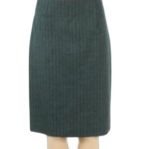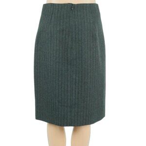 Charcoal Black Missoni pinstriped knee-length skirt has black tonal pinstripes, small slit pocket on front, hidden zip closure, hook and eye closure