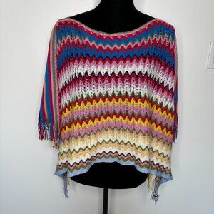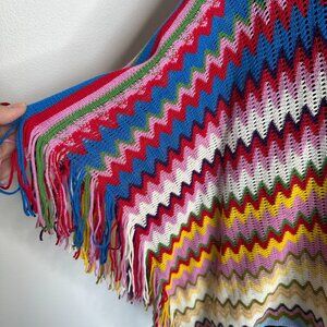 Missoni Poncho Multicolor Chevron Wool Blend Fringe